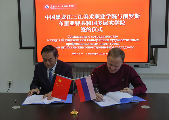 1月6日下午,黑龙江三江美术职业学院与俄罗斯布里亚特共和国多层次学院签署合作办学备忘录。双方决定在促进中俄教育交流及三江美院在布里亚特共和国招收国际留学生等方面展开合作。