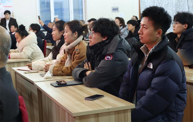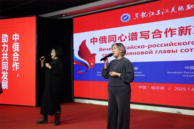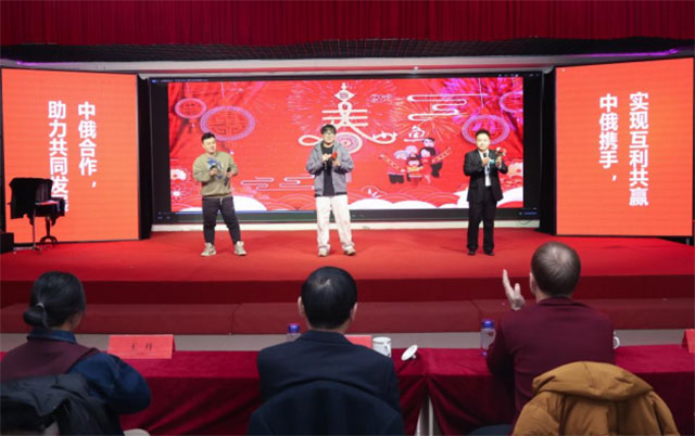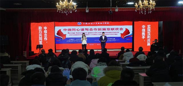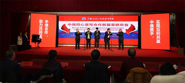 2025年1月6日晚,黑龙江三江美术职业学院演播厅灯光璀璨,乐曲悠扬,“中俄同心谱写合作新篇章联欢会”在这里隆重举行。俄罗斯布里亚特共和国多层次学院校长安德烈耶夫一行三人与我院教师载歌载舞,共享充满友谊和欢乐的美好夜晚。