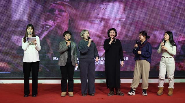 影视动画系陈光、高臣、任平三位老师带来歌曲《最亲的人》,吴喜春、陈宪武、孙卓赓、苗文森四位老师以及中俄联合教育学院学生苑庆福为我们带来葫芦丝长笛合奏《友谊地久天长》,环艺系教师带来了小合唱《我的未来不是梦》和古典舞《且看行云》。