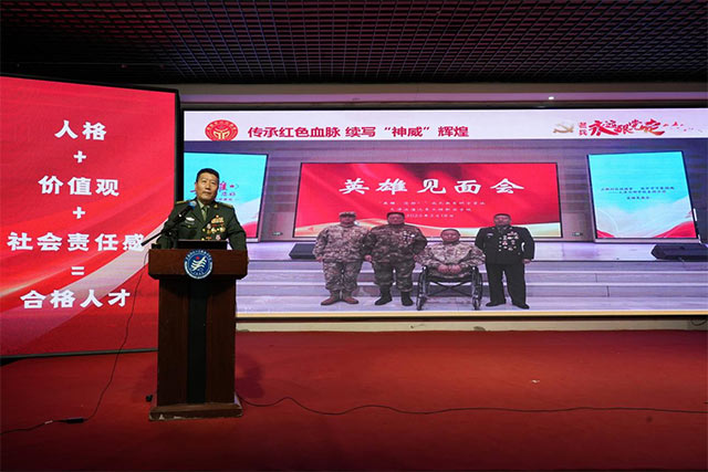 在三江美院进行宣讲的是战斗英雄王自焰大校。王自焰1980年参军入伍。1987年参加边境自卫还击作战,任广西前线空军某部作战参谋兼导弹发射阵地一号战斗班首席引导师,在著名的“10.5”战斗中,亲自发射三枚导弹,一举击落入侵我国领空的某国米格作战侦察两用机一架,敌飞行员被我部生擒。战后,时任军委主席邓小平为王自焰颁发嘉奖令,部队为王自焰记一等功。时任总参谋长杨得志和空军司令员王海亲切接见了王自焰。 2009年建国六十周年之际,王自焰光荣当选中国人民解放军总参谋部英雄模范代表。