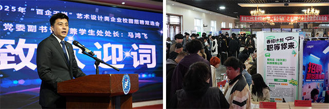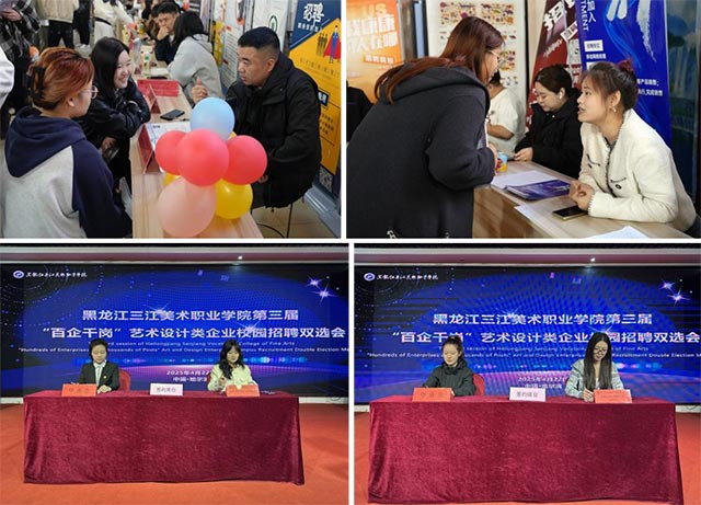 2025年4月22日上午,黑龙江三江美术职业学院哈尔滨教学实习基地热闹非凡,第三届“百企千岗”艺术设计类企业招聘双选会在此召开。