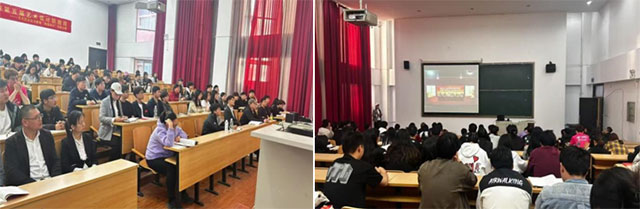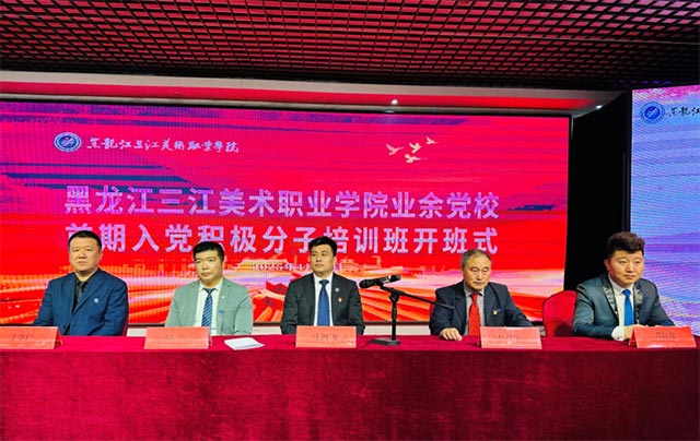 4月22日,黑龙江三江美术职业学院业余党校首期入党积极分子培训班开班式在哈尔滨教学实习基地礼堂隆重举行。学院党委副书记马鸿飞及业余党校领导班子成员出席开班式。来自学院各系部院的二百余名入党积极分子在现场参加开班式,北京教学实习基地师生通过视频连线方式参加。