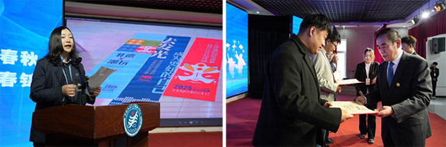 ▲党委书记高明学为获得优秀毕业生颁发证书