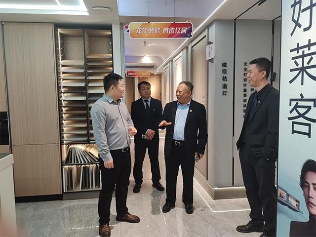 黑龙江亿居装饰工程有限公司张玉泉经理陪同高明学书记一行参观了公司“装配式装修样板间”及“数字化设计中心”。张玉泉经理说:“装配式装修是行业转型方向,企业急需既懂传统施工工艺又掌握BIM技术的复合型人才。”双方达成共识,拟于2025年秋季学期联合企业共同修订人才培养方案,增设相关课程,以供企业用人需求。