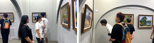 黑龙江三江美术职业学院理事长、院长王英海率领学院中俄联合教育学院数百名专业教师和优秀学生代表参观了画展。