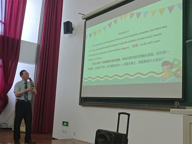 张冉老师的“用英语讲中国故事”,以英语讲述了中华人民共和国国歌在开国大典前夕确定的过程,用“中华民族到了最危险的时候”激励学生努力学习,结合影像资料带领学生重温历史,给学生奉献了一堂英语语言强化及培育爱国情怀的思政课。