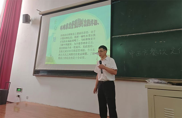 朱逢春老师的“中西方餐饮习惯差异比较分析”,介绍了中西方在餐具使用、饮食方式与食物种类上的种种差异,让学生感受了中西方饮食文化的独特魅力,同时激发了学生对中国美食的自豪与共鸣。