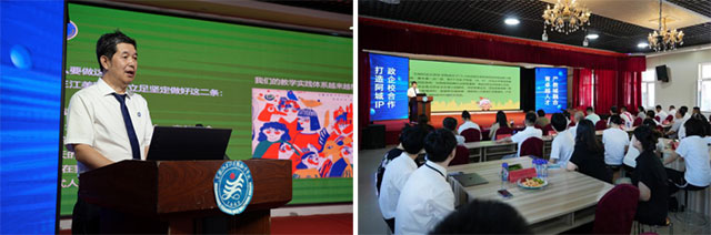 本次交流会集中展示了学院于2025年5月底开展的“创意无界,彩绘阿城”大型产教城融合教学实践活动成果。学院教学督导室主任吴志民教授以一组沉甸甸的数据揭开交流会序幕:在5月26日至28日的实践教学活动中,1500余名师生与50余位省内知名书画艺术家组成13个艺术考察团,深入吊水壶、金龙山、平山鹿苑等阿城核心景区采集素材。返校后仅一周时间,16个文创组便交出惊艳答卷——设计IP形象30余个,开发盲盒40余套,创作绘本8本,制作招贴广告70多张,完成VI形象手册9本,提交企业文创策划案3本;诞生工艺摆件、挂件、颈椎套枕等近千件实体产品;其中10件套具备显著市场开发价值。尤为可贵的是,师生们高质量完成企业指定项目17项,同步产出6条广告短视频及小程序,生动诠释了三江美院产、学、研、训、创五位一体人才培养模式的成熟魅力。