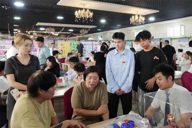 接下来进行的是企业代表与学院师生的交流互动环节。各企业负责人来到各创作小组中间,与师生们亲切交流。企业家们充分肯定了师生们现已完成的文创作品的质量和应用前景,师生们则就各景区旅游产品的深度开发方向等问题向各景区负责人面对面征求意见。师生代表们表示,虚心接受企业方面的建议,对已经完成的作品还要精益求精,反复打磨,力求以更加完美、更接地气的形式,更具特色、更加引人入胜的丰富内涵,吸引游客和顾客的目光,为阿城区旅游和其它特色产业的高质量发展打造更多靓丽的名片。