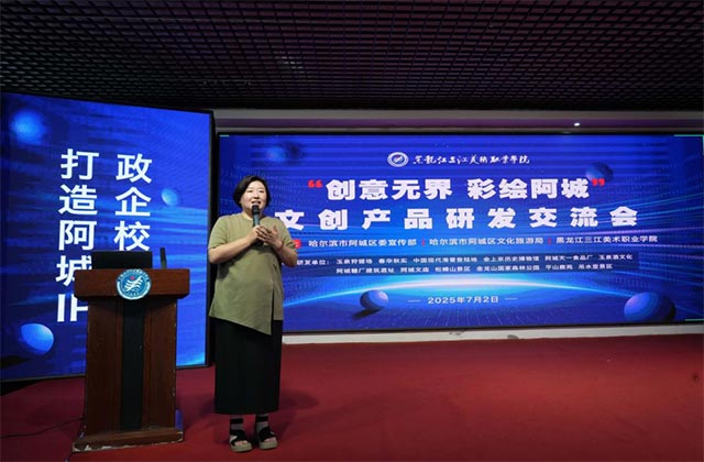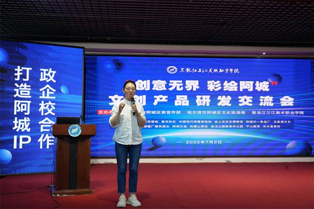 7月2日,由哈尔滨市阿城区委宣传部、文化和旅游局、黑龙江三江美术职业学院联合主办的《创意无界,彩绘阿城》文创产品研发交流会在三江美院哈尔滨教学实习基地演播大厅举行。