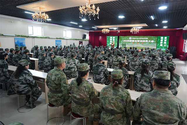 在热烈的掌声中,三江美院2025级新生军训动员大会落下帷幕。与会领导退席后,各连队立即投入到紧张的训练中。