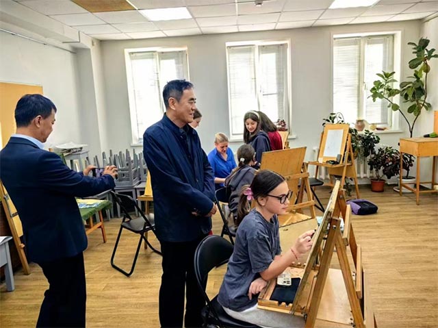 中俄职教联盟年会期间和年会结束后,校长王英海教授一行走访和考察了俄罗斯太平洋国立大学、交通铁路大学,哈巴罗夫斯克技术学院以及布拉戈维申斯克市少年美术学校等教育机构,分别与上述院校负责人进行了深入交流和洽谈。与此同时,王英海校长一行还在哈巴罗夫斯克、布拉戈维申斯克两地先后走访了我院特聘教授、功勋画家、布拉戈维申斯克市美协主席瓦吉姆和哈巴罗夫斯克实力派画家寥列阿的工作室和俄方学校美术教学实况,对我院在俄招收来华留学生项目进行了实地调研。
