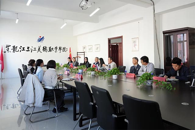 10月10日上午,黑龙江三江美术职业学院校园内洋溢着浓厚的喜庆氛围与国际化气息。学校理事长、校长王英海教授率领部分校领导班子成员以及中层干部代表,在会议室亲切接见了首批2025级俄罗斯留学生的三位家长代表——来自伊尔库斯克的达希耶娃·玛丽娜女士,来自雅库斯克的科洛杰尼兹尼科娃·凯斯基莱内女士和鲍里索娃·拉伊莎女士。此次见面会不仅是一次家校之间的温情对话,更标志着三江美院在国际化办学,特别是深化对俄教育合作方面迈出了重要的一步。