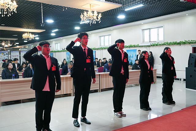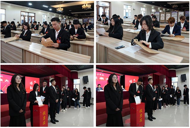 大会选举工作总监票人王泽宇宣读投票结果,最终臧若迪,赵中溢,黄琬晴,王梓澳,王世达五名同学当选新一届学生会主席团成员。臧若迪代表新一届学生会宣读了黑龙江三江美术职业学院第五次学生代表大会倡议书,并带领新一届主席团成员宣誓。