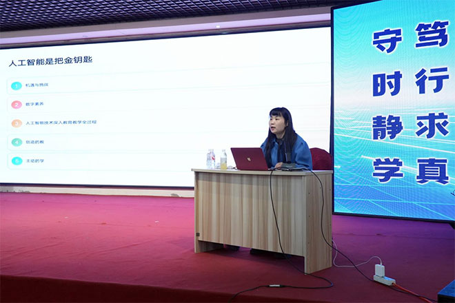 本次培训特邀哈尔滨职业技术大学三位在人工智能教育应用领域具有丰富实践经验的专家——都基宇、陈丽梅、王胜龙担任主讲,围绕AI数智化赋能工作场景、教学设计创新、教材改革等前沿话题展开深入研讨。我校各部门教科研办负责人、人工智能通识课教研组及无课教师共同听课,在思维碰撞中探索智能时代教育变革的新路径。