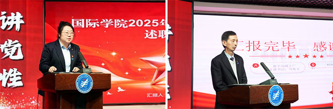 会上,北京教学实习基地党支部、智慧建筑工程学院党支部、艺术疗愈健康产业学院党支部、设计与科技融合学院党支部、学团党支部、行政后勤党支部、党群党支部、国际学院党支部、数字动画工厂党支部等九个党支部书记依次登台述职。各党支部书记紧扣“履行职责情况”“存在的主要问题及原因”“下步工作思路和主要措施”三大板块,围绕政治引领、组织建设、立德树人、产教融合等重点内容,在规定的时间内晒成绩实事求是,摆问题不遮不掩,谈整改有的放矢。