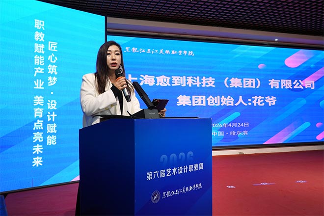 随后,两位企业代表先后发言。上海愈到科技集团创始人卫晓霞女士介绍,愈到集团与黑龙江三江美术职业学院强强联合,共建艺术疗愈健康产业学院,这是目前全国高职院校中首家开设的艺术疗愈专业方向。她指出,艺术疗愈作为黄金朝阳行业,专业人才缺口巨大、发展前景广阔。双方联合打造的校企合作订单班今年首批仅招100人,采用“2+1”专属培养模式:前两年由集团派驻行业专家和资深疗愈师在校授课,学生可参与真实疗愈项目与文创开发实操;第三年进入集团及全国合作企业顶岗实习,真正实现“入学即入行、毕业即骨干”。她欢迎广大学子抓住机遇,加入艺术疗愈这一充满希望的新兴领域。