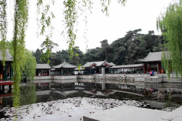 颐和园前身为清漪园,坐落在北京西郊,距城区十五公里,占地约二百九十公顷,与圆明园毗邻。它是以昆明湖、万寿山为基址,以杭州西湖为蓝本,汲取江南园林的设计手法而建成的一座大型山水园林,也是保存最完整的一座皇家行宫御苑,被誉为“皇家园林博物馆”,也是国家重点景点。在中外园林艺术史上,地位显著,有声有色,建筑艺术文化都无愧于世界上的“物质与文化双遗产”的美名。