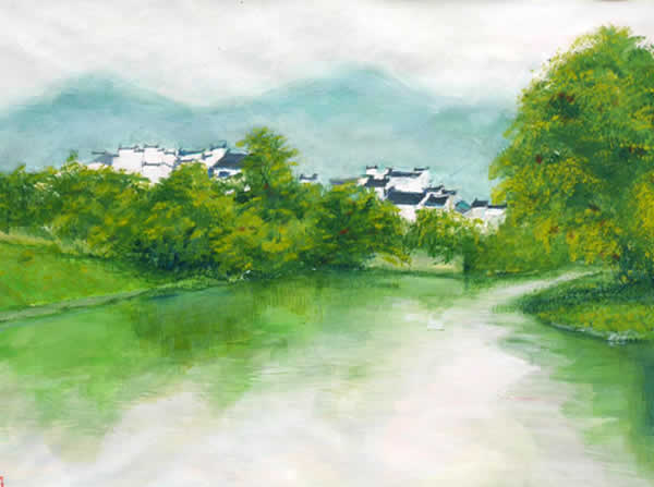 师生作品风格各异、多姿多彩。老师和同学们互相观赏、切磋交流。这将对同学们的艺术创作从观察到构思、到表现的全面提升起到巨大的鼓舞和推动作用。也将大大提高同学们对自然、对生活的热爱及他们的表现欲望和创作热情。两周的宏村写生可以说是效果显著、收获颇丰。