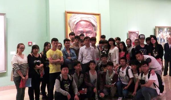 9月24日,我院北京教学实习基地组织部分学生来到中国美术馆参观由文化部主办的纪念建国65周年美术作品展,此展展出了中国美术馆收藏的历届全国美展获奖作品。学生们在北京学习的最大方便就是能经常性地获得开阔眼界、欣赏原作的机会,而老师带学生边看经典原作边讲解也是比较好的一种教学方式。