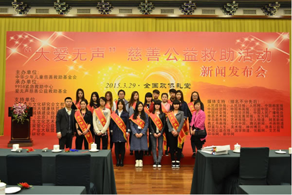 2015年3月30日,应中华少年儿童慈善救助基金会邀请,北京教学实习基地团委带领部分学生在全国政协礼堂参加首届“大爱无声”公益慈善书画拍卖活动新闻发布会。本次义拍筹集的善款将全部用于贫困地区儿童药物性耳聋的筛查,特邀CCTV、新华社、人民日报、人民政协报等六十多家媒体全程报道,并甄选突出贡献艺术家进行专访。