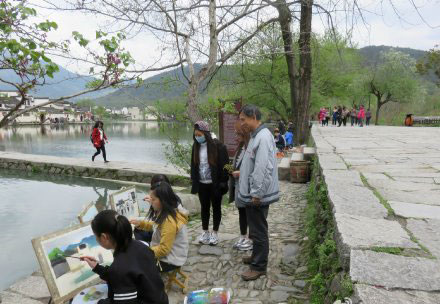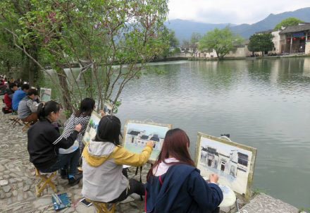 2015年4月7日-18日,我院北京教学实习基地部分师生共127人来到著名的安徽宏村进行色彩写生教学活动。宏村是全国100多个院校的写生基地。我院师生汇进来自全国各地的千人写生大军,融入宏村这个世界文化遗产金额国家5A景区内,形成一道独特的“公共艺术人文景观”。图为北京基地的师生们在宏村写生中进行实地教学的几个情景。