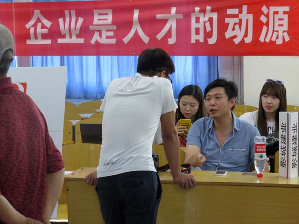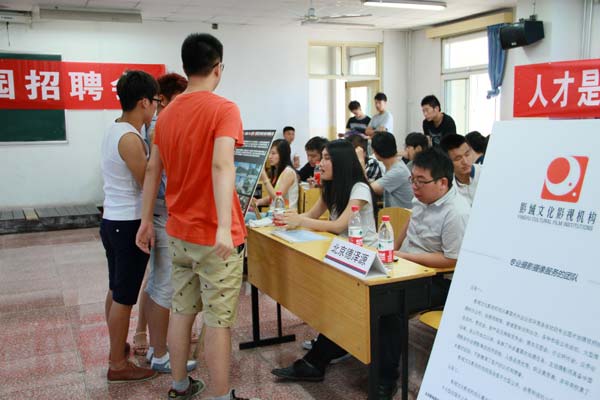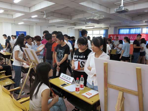 北京德泽源瑞艺术设计公司是以公共艺术为主营项目的知名企业,他们对三江美院的环艺专业学生最感兴趣,企业也引起了众多学生的关注。而博文融发装饰管理公司和北京任道设计、元州设计、龙腾设计、业之峰、实创装饰等以设计为主营业务的公司也引起许多应聘同学的密切关注。在北京影域文化影视机构的招聘桌前,也围着一群喜爱摄影的学生,他们想要了解和咨询的是设计与影视之间的职业融合。