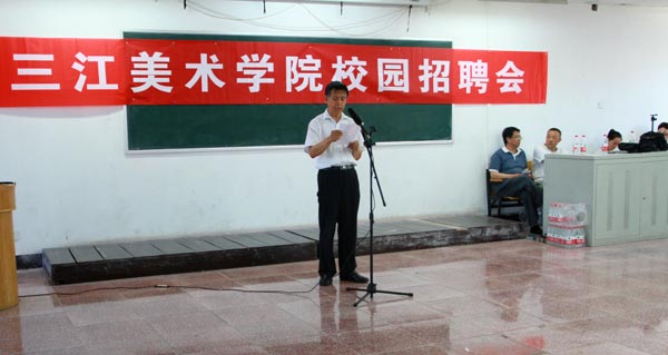 校园招聘会由三江美院北京教学实习基地招生就业办主任杨国田主持,学院北京教学实习基地党支部书记金红炜教授发表讲话。金红炜书记代表全院师生对出席此次招聘会的京瑞博文融发、北京实创装饰、北京龙腾设计、北京业之峰、北京东易日盛、北京元州装饰集团等多家著名艺术设计和文化创意企业嘉宾的到来表示热烈的欢迎!
