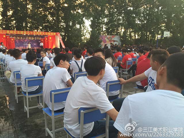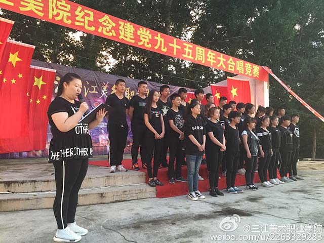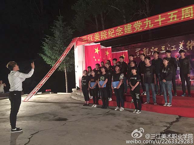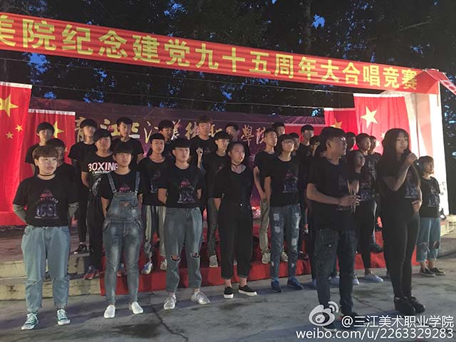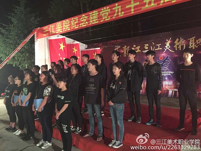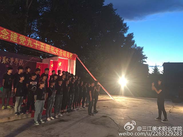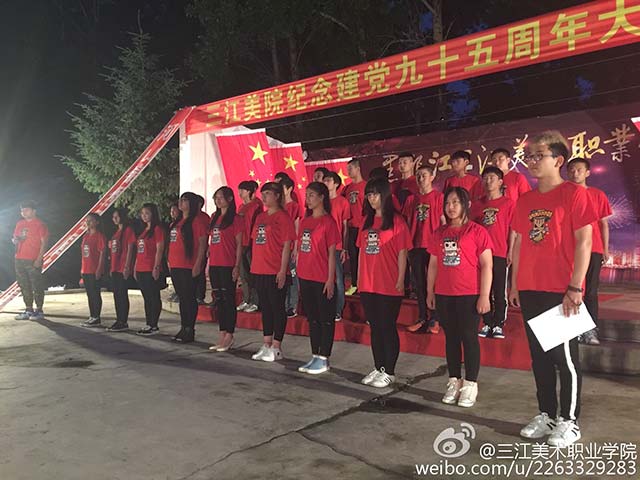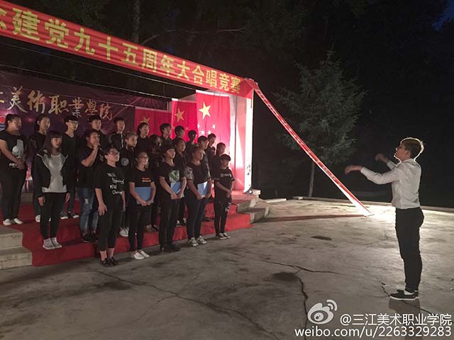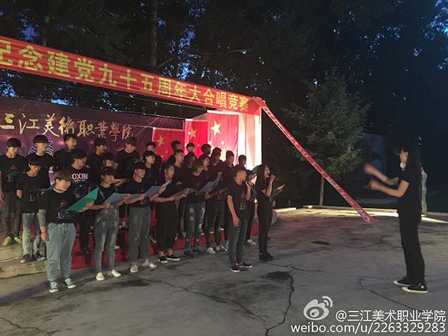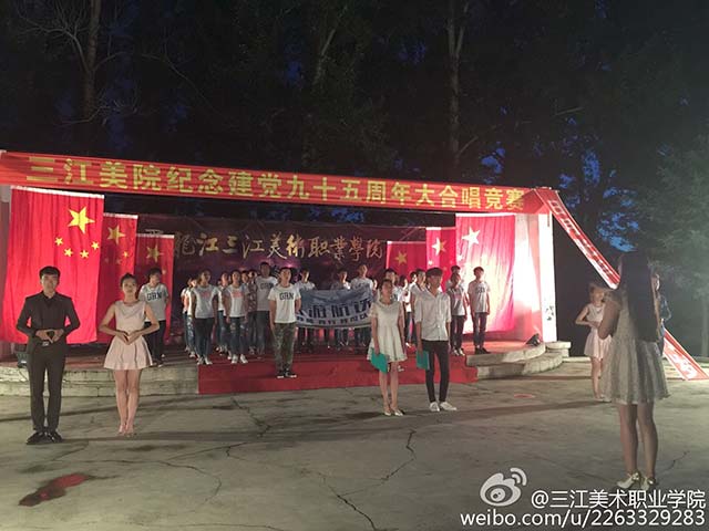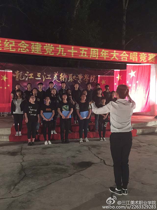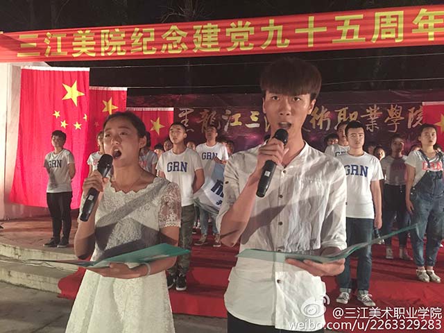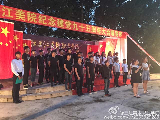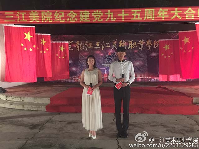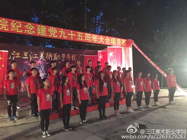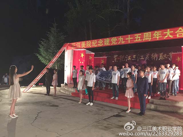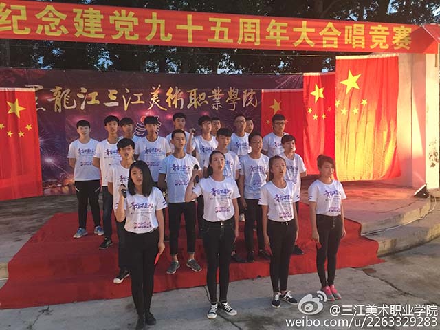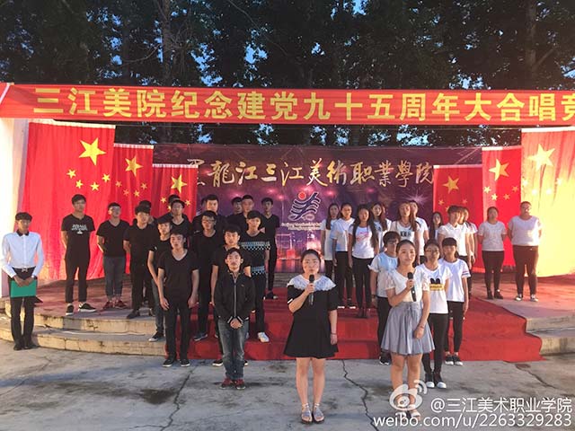 八十曦月金沙水,九十五载举国春。2016年7月1日晚上,天公做美,下了一天的雨停了,紫红色的大片火烧云映衬着美丽的天空。黑龙江三江美术职业学院举办了“纪念建党95周年暨红军长征胜利80周年合唱比赛”。学院院长王英海、党委书记郭金、党委宣传部长马鸿飞、组织部长孙仕昌出席活动,并与全体师生员工共同欣赏演出。