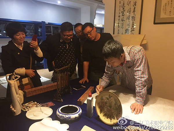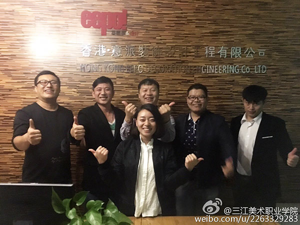2016年11月9日,黑龙江三江美术职业学院理事会理事长、院长王英海教授,三江美院理事会理事、教务处执行处长、影视动画系主任马兆玉教授,三江美院党委宣传部部长、学生处处长、佳木斯校区校长马鸿飞同志,三江美院(哈尔滨校区)环境艺术工程系教研室主任单天城同志,三江美院(哈尔滨校区)数字传媒系教师石莹莹同志,三江美院影视动画系教师、留日学者王明月同志等一行6人在广东东莞考察了我院九九届毕业生、知名高级室内设计师郝立军先生(13929259688 )创办的香港·意派装饰设计工程有限公司。