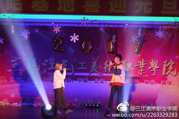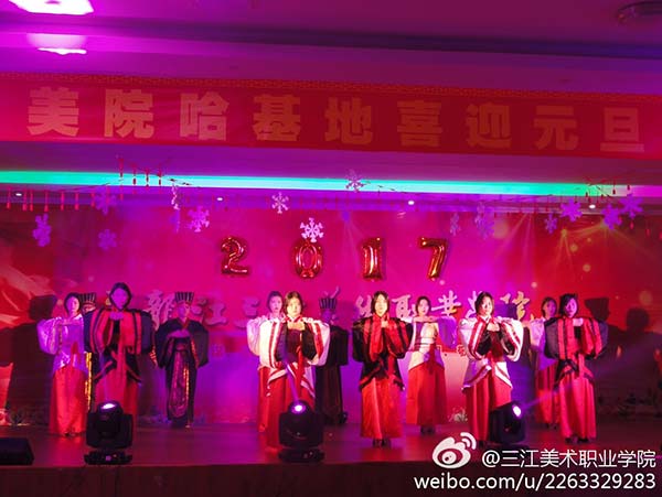 2016年12月29日晚6点,“三江美院哈尔滨教学实习基地喜迎元旦文艺晚会”在学院礼堂拉开帷幕。师生们欢聚一堂,喜迎元旦佳节。