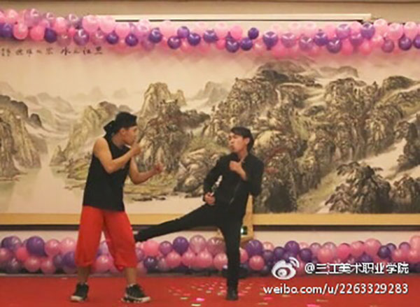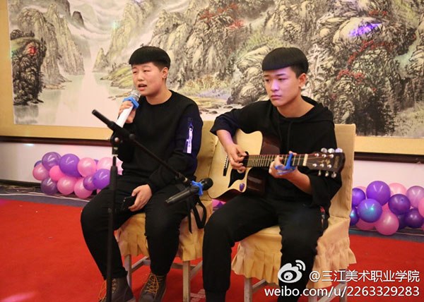 晚会在年轻教师歌曲《相亲相爱》+书法表演的节目表演中落下帷幕。书法技艺精湛,书写内容感人,饱含对黑龙江三江美术职业学院的无比热爱和自豪,十个大红“福”字,预示着我们佳木斯校区师生幸福,事业红火,负重腾飞的美好未来。