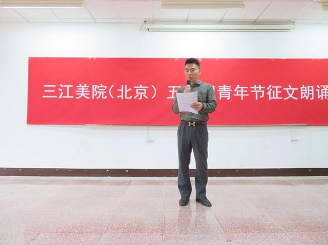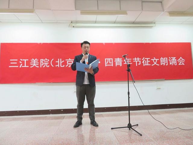 本次朗诵会结束前,三江美院副院长、北京教学实习基地书记、主任金红炜教授代表学院领导和北京基地党政班子作总结讲话。他在讲话中充分肯定了此次活动中15位同学们各具特点的朗诵风格和昂扬向上的征文内容。感谢校企合作单位领导卫亚军总经理的支持和评价。表彰了隋新磊同学青年节向学院捐赠物品感恩之举的意义,提出像隋新磊这样的在校创业同学所作出的支持母校工作的实际行动意义十分难得,也十分可贵!也十分值得同学们向他学习!他说:今天的朗诵会活动也进一步表达了我们三江美院广大师生对振兴中华,实现中华民族伟大复兴的共同愿望,这也正如习近平总书记在昨天(5月3日)下午来到与我们相距很近的中国政法大学考察时重要讲话对大家的期望完全一样。