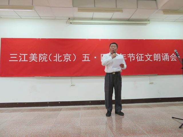 傍晚6时许,三江美院(北京)五四青年节征文朗诵会在大家的热烈掌声和《歌唱祖国》的乐曲声中结束。