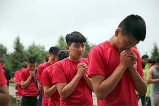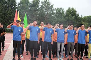 经过一夜的校园酣睡,6月19日早,伴随着嘹亮的号角,队员们早晨7:50准时在205广场集合,进行启动仪式--“破冰”。全体学生组成红队、蓝队、黄队、橙队、绿队五个队伍,在各队教官的带领下,队员们推选出各队的队长,制作队旗,确定旗手,创建队名、队呼和队歌,让队员们加深了解,形成了团队,有了“家”。