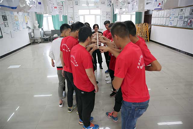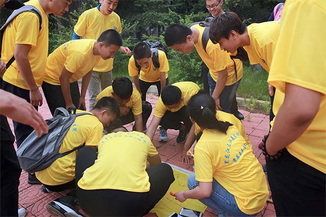 如果说“信任背摔”是为了让队员们信任彼此,那么下一项“齐眉棍”就是为了让队员们学会不要埋怨,“盲人方阵”让队员们学会沟通,这一天正是教会了我们如何在生活工作中不抱怨,做好计划、注重团队合作,才能无往而不利。