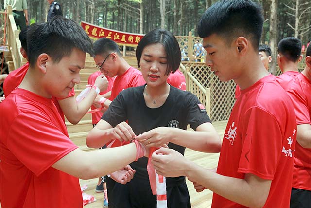 撕名牌是时下流行的综艺节目《奔跑吧,兄弟》的主打娱乐项目,此次训练营也让队员们体验了一把,虽然我们不是明星,但是我们是自己命运的主宰,队员们玩得兴致勃勃。