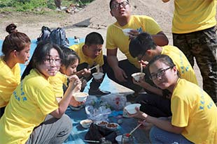 经历了辛苦和疲劳,迎来了欢乐幸福的时刻,联欢会和户外野餐让队员们耳目一新,精彩的文艺节目沸腾了整个校园,和谐欢乐的主题在日月湖餐厅盘旋回荡,一片欢声笑语,驱散了夜空里些许的阴霾。