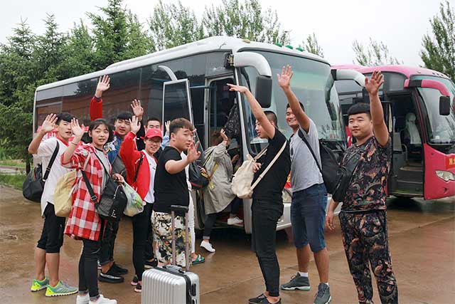 上午 10时,随着大客车的缓缓启动,结束了难忘的拓展训练营的队员们泪眼朦胧,望着渐渐远去的绿树掩映的多彩校园,难舍的情谊在心中扩展和漫延。