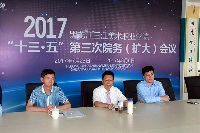 2017年8月1日,黑龙江三江美术职业学院 “十三·五”第三次院务扩大会议按照会议日程安排进行集中讨论,会议由鞠剑锋副院长主持,讨论的议题是行政人员、辅导员以及教师的定级、晋级和岗位工作合同的具体方案。