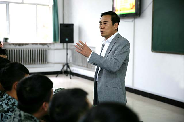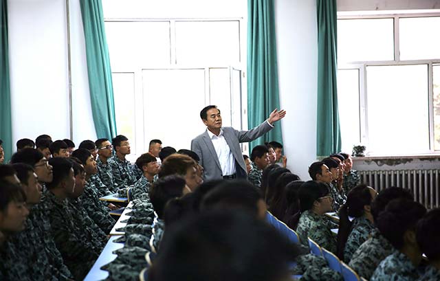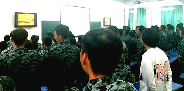 在《强军战歌》的雄壮旋律里,讲座结束了第一环节。