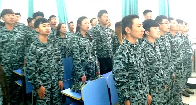 全体学生一起诵读了入学誓词:拥护党的领导,接受党的教育:志存高远,德才并重;情理兼修,勇于开拓;遵纪守法,努力学习;善于创新,积极创业;尊敬师长,爱护同学;争做“四有”新人,报效国家社会!