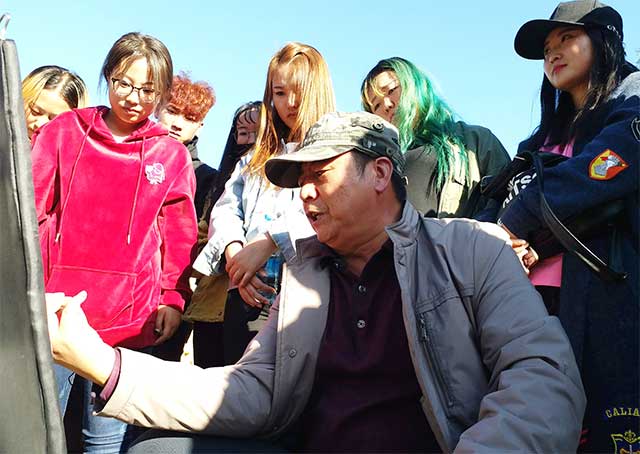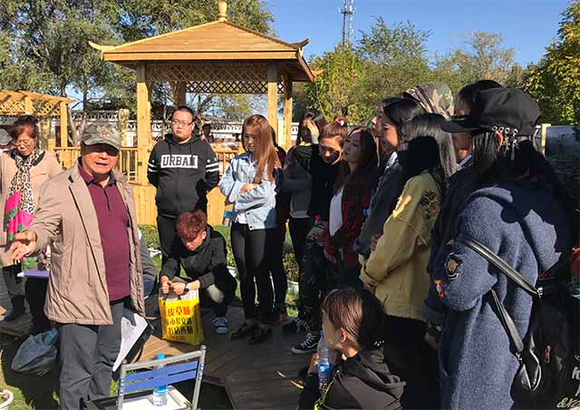把水源山公园作为写生基地,是由王英海院长亲自挑选的。它是一处十分适合写生的艺术圣地,并且眼下很荣幸赶上了公园正在举办菊花展。在参观菊花展过程中,同学们有幸见到了学院党委副书记、知名国画家姚宝山教授和山水画院姜修润院长。在向姚老师学习的过程中,能够深深的感受到他那扎实的绘画功底和深厚的国画实力。