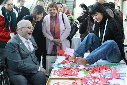 ▲ 夏虹为残奥主席表演剪纸
