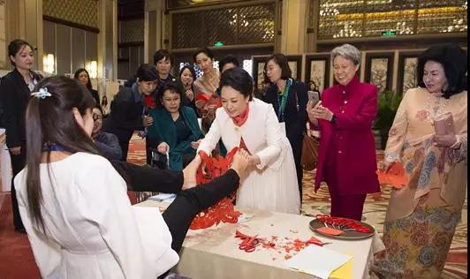 ▲ 夏虹在APEC会议上表演剪纸