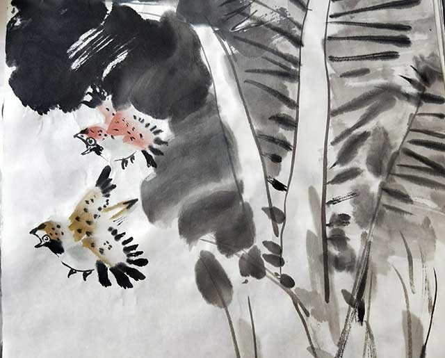 游学第一天,刚走进姚宝山教授的教室,就能感觉到迎面而来的水墨的气息。出于对国画的好奇和喜爱,我认真的对待每一节课。姚教授的讲解很细致,往往轻易就能找到画中的关键。对于几乎没有接触过国画的我来说,姚教授细心的讲解和耐心的指导尤为重要。鼓励对于任何一个人来说都是必不可少的,我想,我能认真对待每一幅练习的画纸,应该离不开姚老师的鼓励吧。