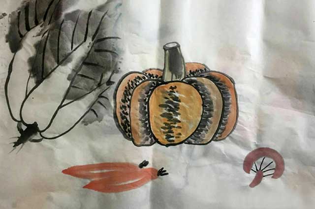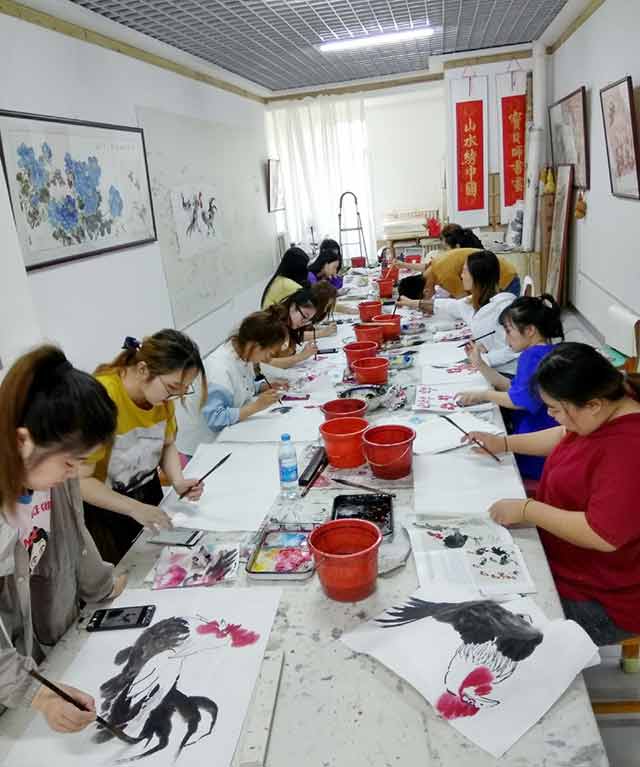 姚宝山教授在教学期间,不厌其烦的为我们讲解,并做示范。短短的半个月时间里,让我们学到了许多东西,同时也让我们感到需要学习的东西还很多。国画给我的感受是需要一种平和的心情,欲速则不达,要自己慢慢体会。学习中国画的兴趣一直支持着我,因为我们还在路上。我最初对国画的认识是,画家寥寥几笔就画出了生动的画面,盛开的牡丹,有神的山水,雀跃的竹林,圣洁的荷花等等。其实对国画的认识,每个人都有自己的理解。国画传统美的概念是上留天,下留地,繁儿透,空儿厚,水墨容情,色泽单纯,一般不超过三四种,这是一种淳朴而有充满无限灵气的自然美。随着社会的发展和生活水平的不断提高,人们更向往的是一种复杂的美,绚烂多彩的美,既有西方的色彩又有东方的纯朴。经过半个月的学习,我学会了赏析中国画。要赏析它的意境境界,只有为观者营造出一种意境的作品,才是一幅好画。