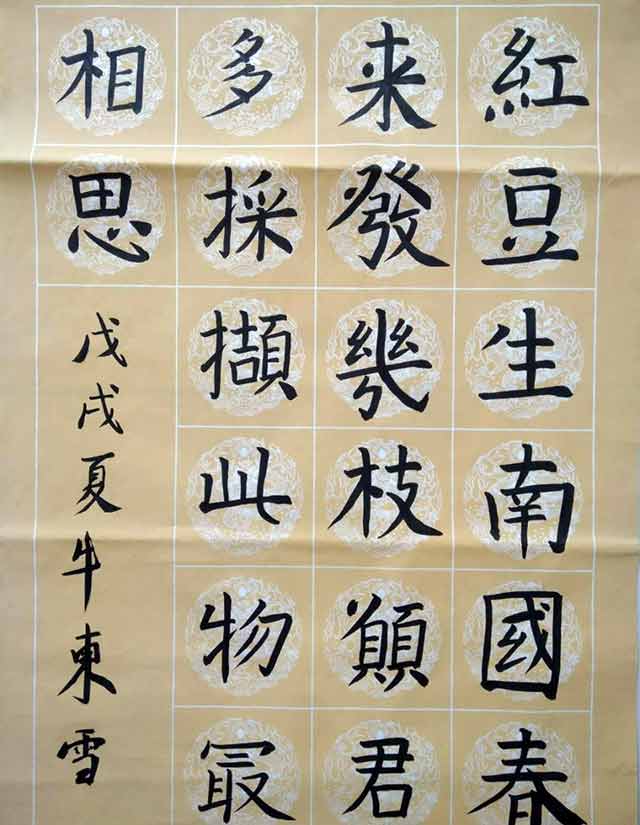 陈绍禹教授亲自给每一位学生打好字帖,而且还手把手的亲自教,使学书法的初学者很快就能掌握书法的基本笔画。然后一个字一个字地教,从握笔、用笔到运笔。运笔时要学会起锋、侧峰、回锋等基本知识,陈教授教得认真,我们学得扎实,很快激发起我们的书法学习热情。