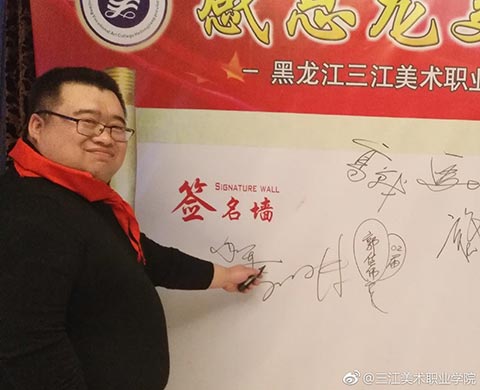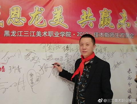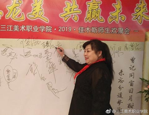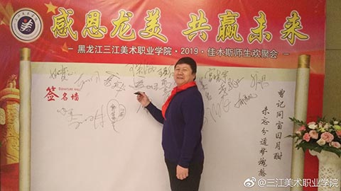 学院党委书记王少青随后也发表了激动人心的讲话,他说:“三江美院佳木斯校友会的成立和开展的联谊活动,对于校友之间加强沟通和合作,在事业上互相支持,互相帮助,共同发展,具有十分重要的意义。在座的校友们在事业上都取得了很大的成绩,也都很有发展前途,相信大家只要团结起来,抱团取暖,互通有无,携手并进,就一定能够使我们大家都从中受益,共创我们美好的明天!”