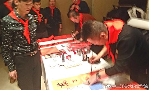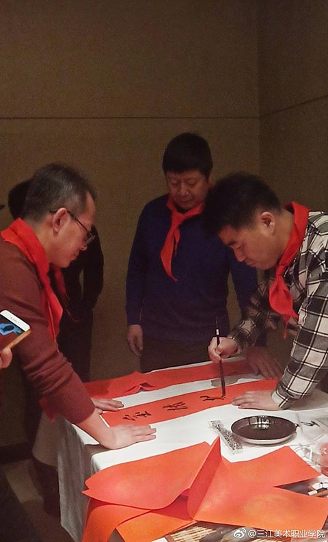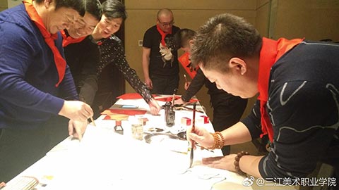 这边书画创作意犹未尽,那边集体照的组织者就已选好了场地,端起了相机。“感恩龙美,共赢未来,走进三江美院,事业成功无限”!在一片响亮的口号声中,集体照顺利拍完。
